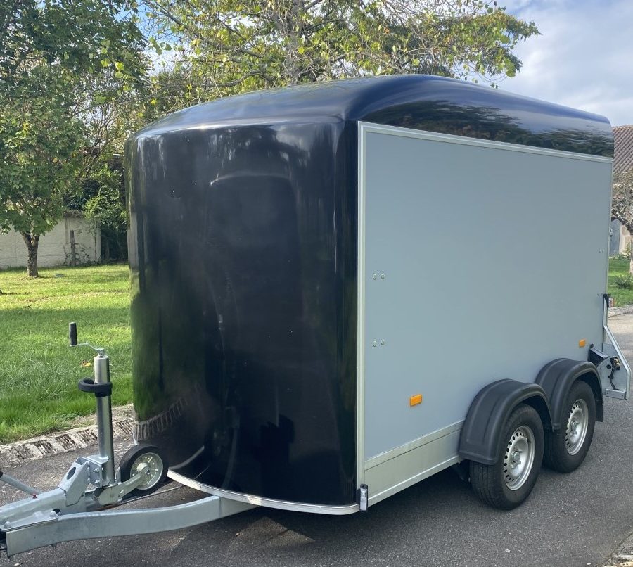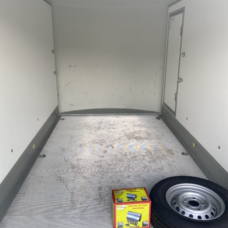 Remorque Fourgon Roadster 500 DEBON état neuf car non utilisée de JUIN 2021 – PTAC 1400 kg – Colorie carrosserie gris clair et toit noir – Double essieux freinées – Porte latérale – Vendue avec une roue complète neuve – Anneaux d’amarrage fixes sur les cloisons – Antivol universel Coiffant – Plancher antidérapant en aluminium – Fiche technique ci-jointe.