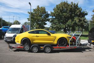 disponible de stock remorque porte voiture BRIAN JAMES double essieux châssis 2022 non immatriculée.