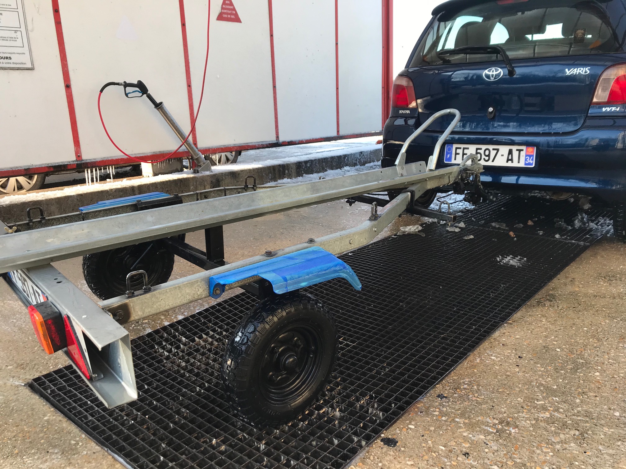 système d accroche prévu pour fixer la rampe à la remorque au moment du transport