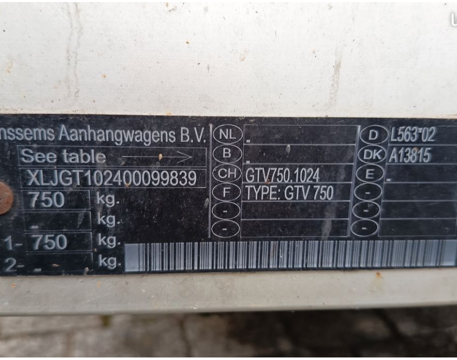 Vends remorque Anssems GTV 750, PTAC 750 kg, simple essieu, idéale pour bricolage, jardinage ou transport de matériel léger.