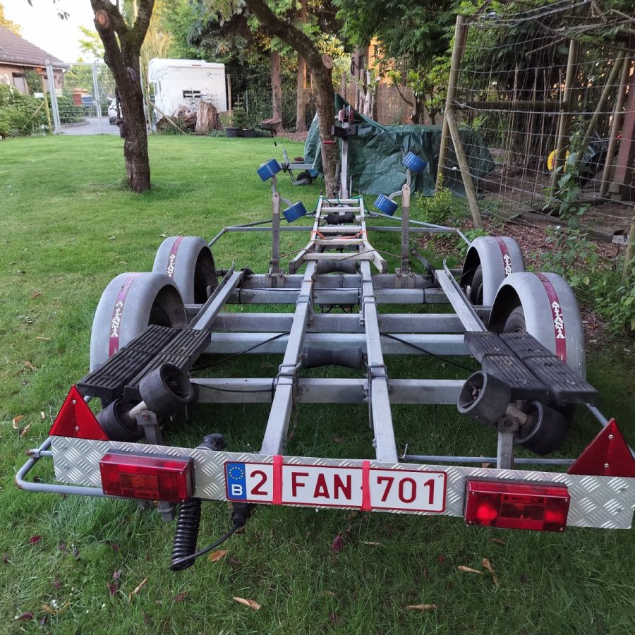 Remorque Route et Mise à l’eau, avec arrière démontable facilement. Dédouanée et homologuée. Document pour immatriculation disponible