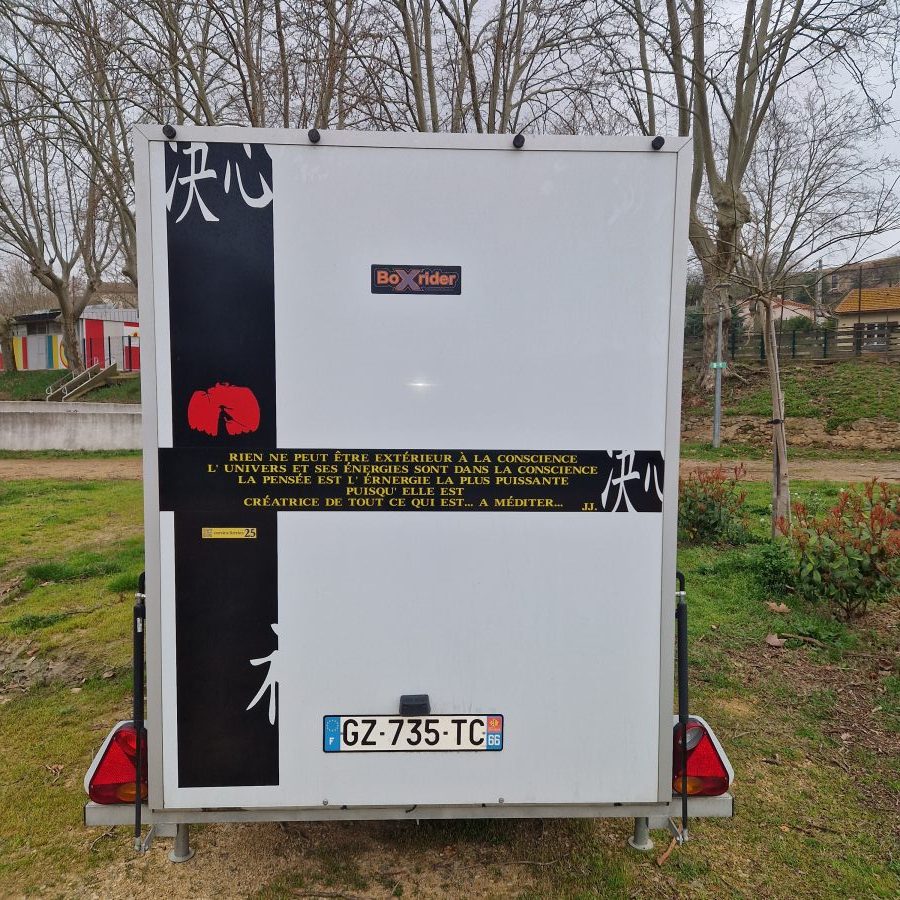 AV remorque BOXRIDER. Dim. int. L= 3m, l=1,50m, H=1,90. Béquilles, roue de secours, roue Jockey renforcée (changée le 02/03/2026). Bloc roue avant moto jante de 19″, ancrage au sol pour sangle à cliquer, plancher anti dérapant, hayon anti dérapant avec vérins, châssis acier galvanisé tout le reste aluminium, pneus en 185 * 14 pour meilleure tenue de route. Antivol intégré au système d’attelage.