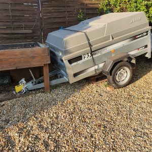 Remorque sur-équipée : Support et Roue de secours + Roue jockey + Capot ABS Hauteur du capot : 20/25 cm, avec