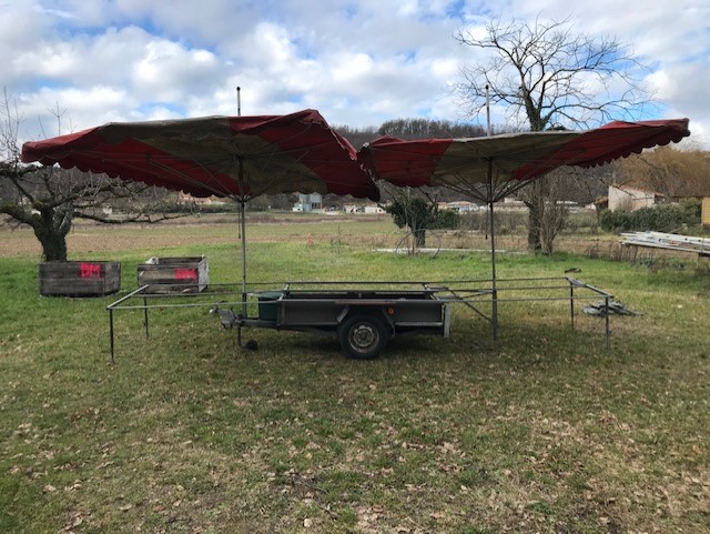 Avec claies + 2 parasols (4m*3m – support remorque)