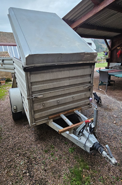 Excellente remorque simple essieu freinée, grandes roues (16″), suit sans jamais bouger même en pleine charge.