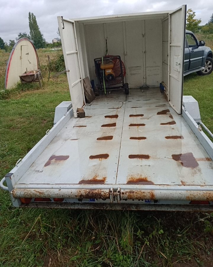 Remorque pour montgolfière ou autre plateau 4 m de long avec une caisse de 1 m de de long fermeture à clé