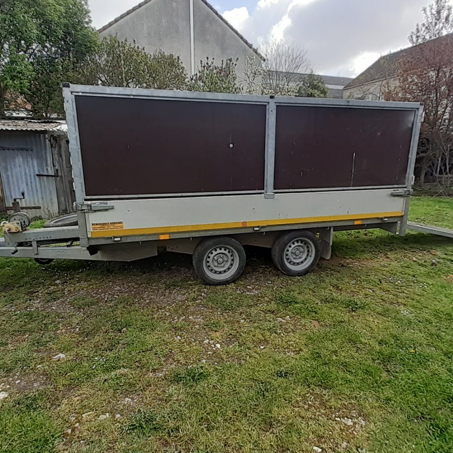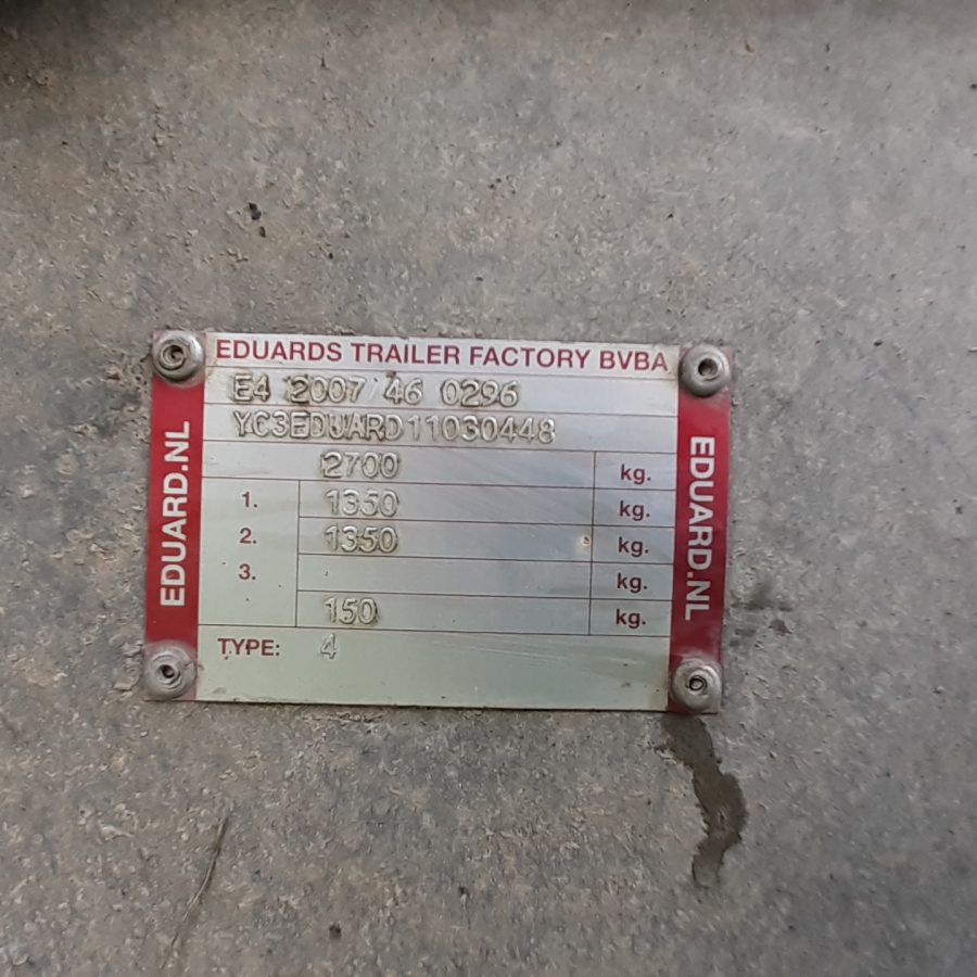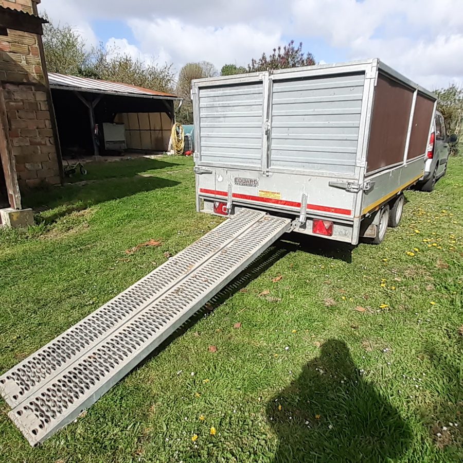 PLATEAU PORTE VOITURE EDUARD 2700 KG AVEC RAMPE TREUIL ET DOUBLE RIDELLE. année 08/2011