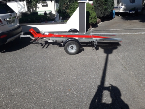 Remorque pliante de marque Ozy, avec marche-pied. Très facile d’utilisation. Etat neuf, et jamais utilisé, acheté en mai 2020.