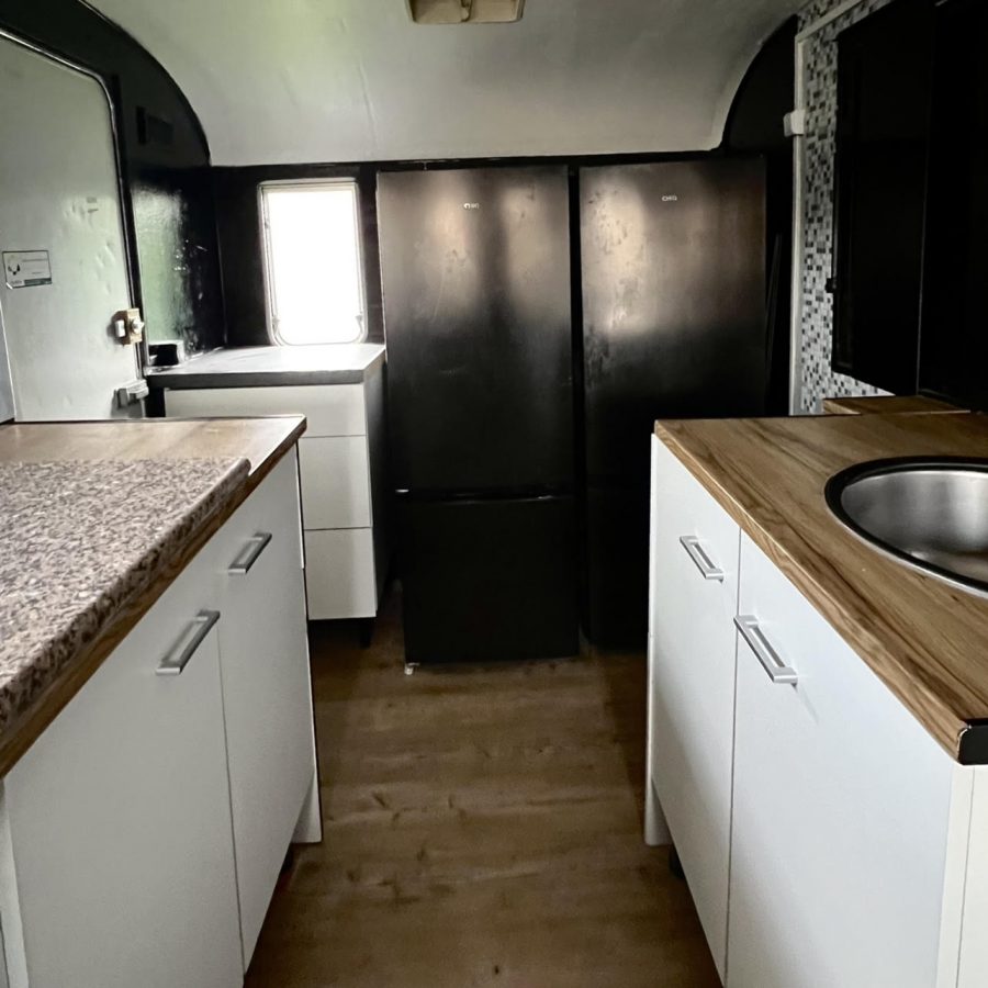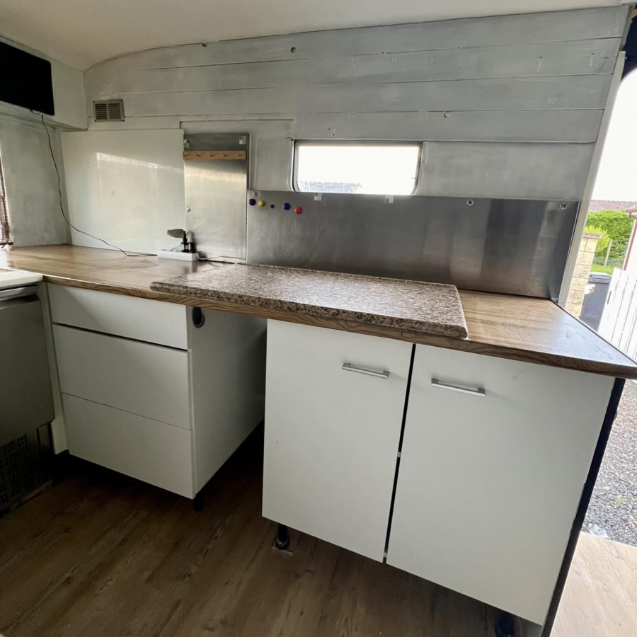 Meubles neufs (prévoir percement et poignées pour meubles tiroirs)+ Sol neuf parquet pvc rigide grand passage, style chêne vieilli, doublage et renforcement en panneaux contreplaqué 18 mm posés en janvier
